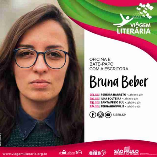 Poeta, tradutora e mestranda em Teoria e História Literária pela Universidade Estadual de Campinas, Bruna Beber está entre os convidados do primeiro módulo do 13º Viagem Literária, “Poesia: Oficinas e Bate-papos com Escritores”. Entre 9 e 27 de novembro, a autora e outros 14 poetas percorrerão 61 bibliotecas de 60 cidades, incluindo a capital paulista, ministrando oficinas e em conversas com o público. Confira o roteiro da escritora ao fim do texto.