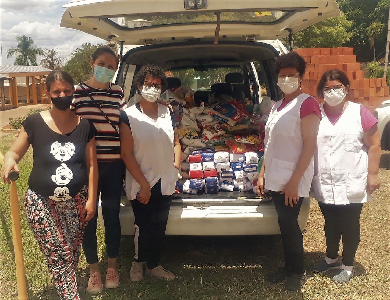Foto 2: Na foto, a entrega de uma parte dos alimentos para os colaboradores da entidade parceira Lar Cristão.