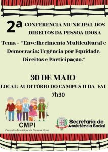 Nesta sexta-feira (30), a partir das 7h30 no auditório Miguel Reale – Campus II da FAI acontece a 2ª Conferência Municipal da Pessoa Idosa.