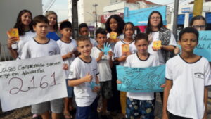 A professora Ana Luiza falou à nossa reportagem que os alunos são membros de um clube juvenil da Escola Helen Keller, “A iniciativa veio para alertar as pessoas no caso da Dengue, eu mesma fiquei 20 dias fora da escola sem poder trabalhar, e nós temos alguns professores que não estão podendo trabalhar por conta da Dengue, sozinhos eles decidiram alertar as pessoas, as pessoas acabam se esquecendo de cuidar do quintal, das plantas, jogam lixo onde não devem, então as crianças estão trabalhando para conscientizar a população aqui na rua, entregando panfletos, empunhando cartazes, e orientando para que a gente continue a luta contra a Dengue”, nos disse ela.