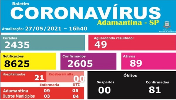 A Prefeitura de Adamantina informa que existem 49 testes aguardando resultado. Eles foram enviados para análise do Adolf Lutz.