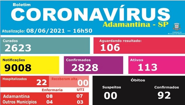 A Prefeitura de Adamantina informa que existem 106 testes aguardando resultado. Eles foram enviados para análise do Adolf Lutz.