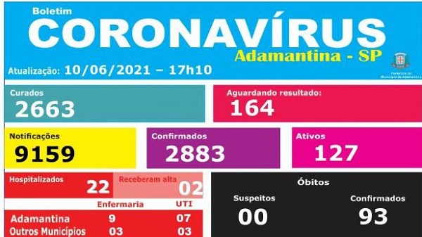 A Prefeitura de Adamantina informa que existem 164 testes aguardando resultado. Eles foram enviados para análise do Adolf Lutz. Isso acontece de forma temporária, pois a Secretaria Municipal de Saúde, já deu início ao processo licitatório para aquisição de nova remessa de testes. Assim que eles chegarem, os resultados voltam a ser liberados pelo município.