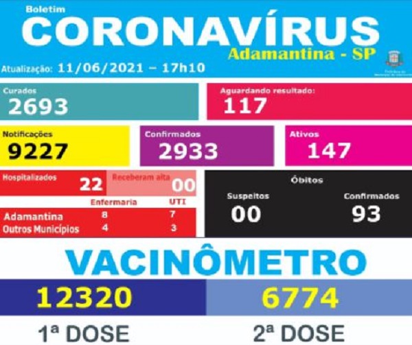 A Prefeitura de Adamantina informa que existem 117 testes aguardando resultado. Eles foram enviados para análise do Adolf Lutz. Isso acontece de forma temporária, pois a Secretaria Municipal de Saúde, já deu início ao processo licitatório para aquisição de nova remessa de testes. Assim que eles chegarem, os resultados voltam a ser liberados pelo município.