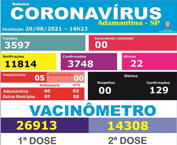 Até hoje (20), 16h30, foram aplicadas em Adamantina 41.221 de vacina contra a COVID-19.