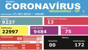 Boletim desta terça-feira (17) do município de Adamantina sobre os casos de COVID-19. Conforme informações da Vigilância Epidemiológica, esses dados são referentes ao dia 16 de maio.
