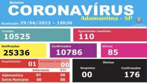Boletim desta quarta-feira (29) do município de Adamantina sobre os casos de COVID-19. Conforme informações da Vigilância Epidemiológica, esses dados são referentes ao dia 28 de junho.