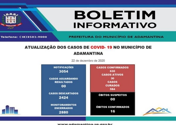 Conforme informações da Vigilância Epidemiológica, esses dados são referentes ao dia 21 de dezembro.