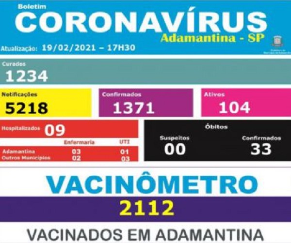 Conforme informações da Vigilância Epidemiológica, esses dados são referentes ao dia 18 de fevereiro.