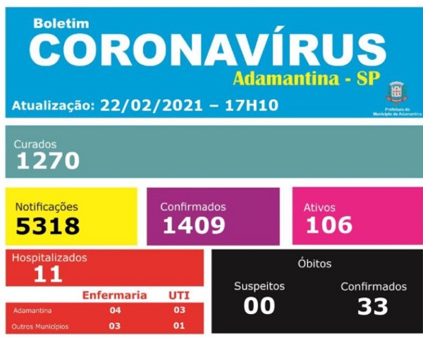 Conforme informações da Vigilância Epidemiológica, esses dados são referentes aos dias 19, 20 e 21 de fevereiro.