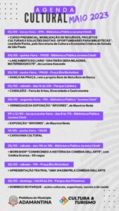 A Prefeitura do Município de Adamantina, através da Secretaria de Cultura e Turismo, divulga a programação de eventos para o mês de maio.