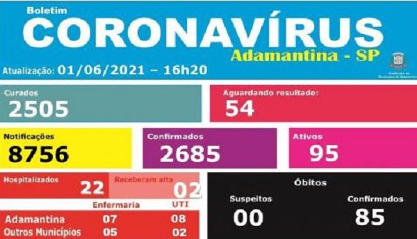 Conforme informações da Vigilância Epidemiológica, esses dados são referentes ao dia 31 de maio.