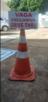 Assim, os lojistas poderão atender os seus clientes de acordo com o sistema drive-thru. A vaga estará demarcada com cone e plaqueta de sinalização.