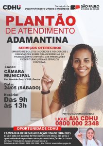 No próximo sábado (24), Adamantina receberá plantão de negociação de dívidas e orientações de atendimento aos mutuários da Companhia de Desenvolvimento Habitacional e Urbano do Estado de São Paulo (CDHU).