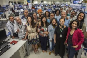 Jornalistas e repórteres fotográficos da Agência Brasil, em Brasília, posam para foto na sede da Empresa Brasil de Comunicaçāo (EBC). Agência completa 33 anos nesta quarta-feira. Foto: Joédson Alves/Agência Brasil