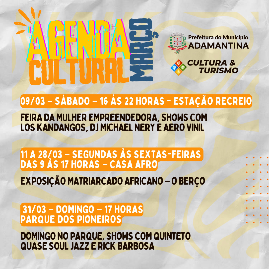 Agenda cultural de março em Adamantina começa com Rock na Praça