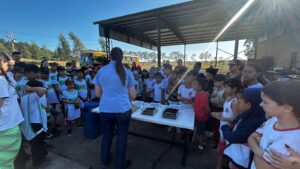 Ao fim da visita, todos os estudantes foram presenteados com o composto orgânico e orientados a utilizarem em casa nos vasos de plantas.