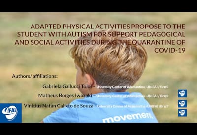 Eles apresentaram o artigo “Proposta de atividades motoras adaptadas ao aluno com autismo visando apoio às atividades pedagógicas e sociais durante a quarentena da Covid-19”, que integrou o Trabalho de Conclusão de Curso (TCC) dos dois estudantes no curso de Licenciatura em Educação Física.
