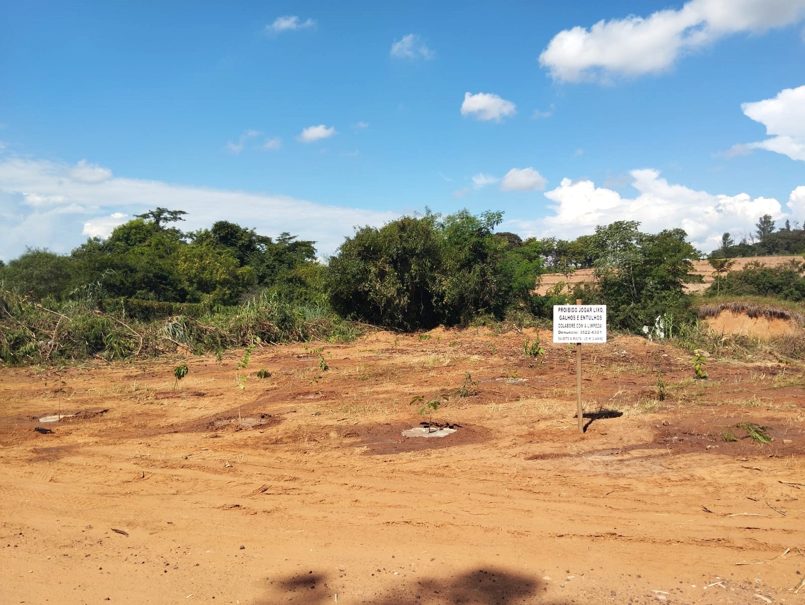 No sábado, equipes da secretaria realizaram a limpeza do local. Já na segunda-feira, como forma de conscientização, foram plantadas mudas de árvores nativas e frutíferas, com o objetivo de sensibilizar a população sobre a importância da preservação ambiental e reforçar que o espaço não é apropriado para o descarte de resíduos, prática que causa impactos diretos ao meio ambiente.