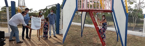 12/08/2020 13h56 Na manhã de hoje (12/08), o prefeito de Adamantina, Márcio Cardim, fez o descerramento da placa de reinauguração do popularmente conhecido “Parquinho do