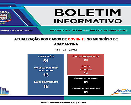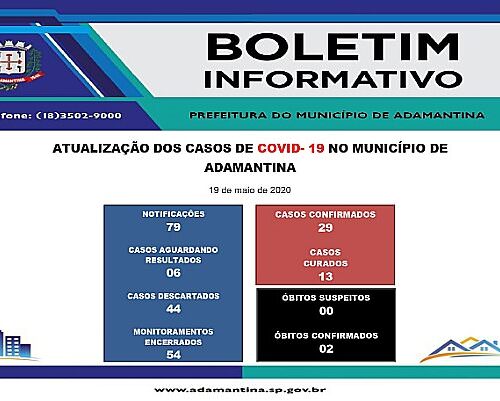 20/05/2020 A Secretaria Municipal de Saúde informa novos registros de casos positivos da COVID-19 nesta quarta-feira (20). São quatro casos que confirmaram a doença após