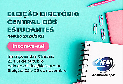 29/10/2020 19h19 Eleição está marcada para ocorrer dias 5 e 6 de novembro Por Priscila Caldeira O Diretório Central dos Estudantes (DCE) do Centro Universitário