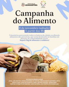 Sábado (8), acontecerá mais uma edição da Campanha do Alimento, promovida pela Prefeitura de Adamantina, por meio do Fundo Social de Solidariedade.