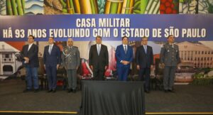 O governador Tarcísio de Freitas participou nesta quarta-feira (25) da celebração de 93 anos da Casa Militar, completados na última segunda-feira (23). O órgão, também responsável pela Coordenadoria Estadual de Proteção e Defesa Civil, atua na prestação de serviços à população paulista, incluindo ações preventivas, de socorro, assistenciais ou recuperativas, além de ser responsável pela segurança do governador e da sede do governo.