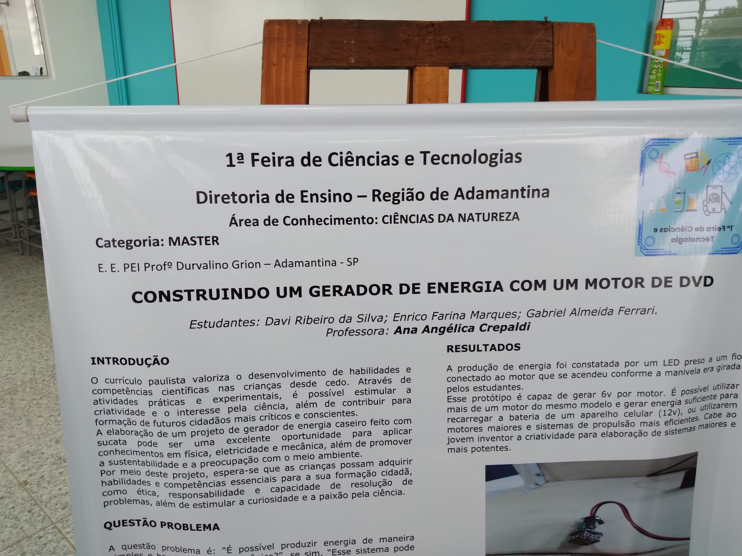 Realizada pela Diretoria de Ensino de Adamantina, a Feira teve início na manhã de hoje (18/04), no Campus I do Centro Universitário de Adamantina, sede do “CIEBP”, prosseguindo até amanhã 19, sendo em dois períodos, manhã e tarde.