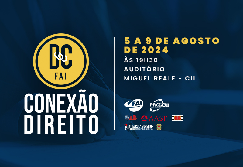 Nos dias 5 a 9 de agosto, o curso de Direito do Centro Universitário de Adamantina promove o “Conexão Direito – Congresso de Extensão”, das 19h30 às 22h no Auditório Miguel Reale, no Campus II. O evento integra as atividades do FAI CIDADÃ – Programa de Extensão do Curso de Direito da FAI, coordenado pela professora doutora Fernanda Stefani Butarelo.