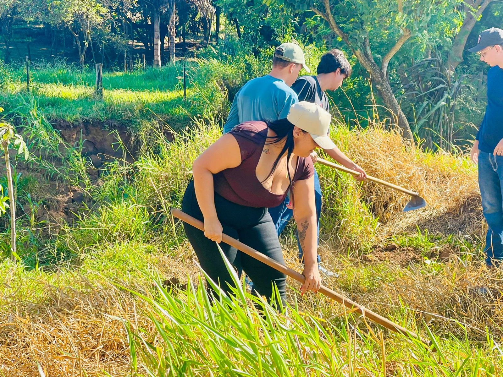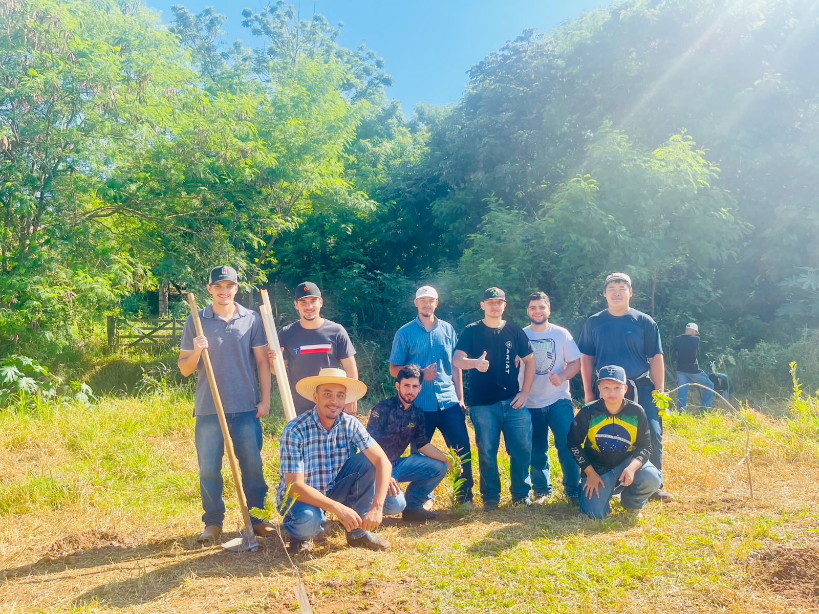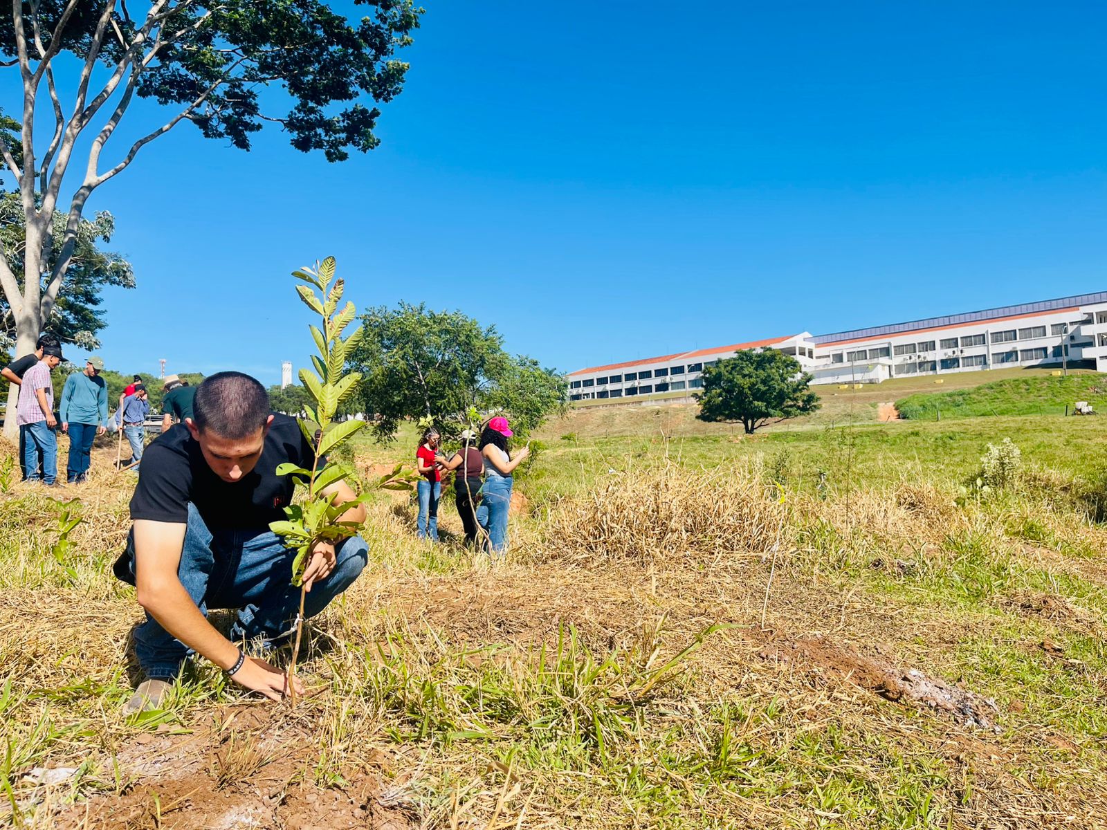Entre as espécies introduzidas na área estão ipês, aroeira, angico, cabreúva, peroba-rosa, pau-ferro, ingá, jatobá e embaúba — árvores de reconhecida importância ecológica, fundamentais para a recomposição da vegetação nativa e para a promoção da biodiversidade local.