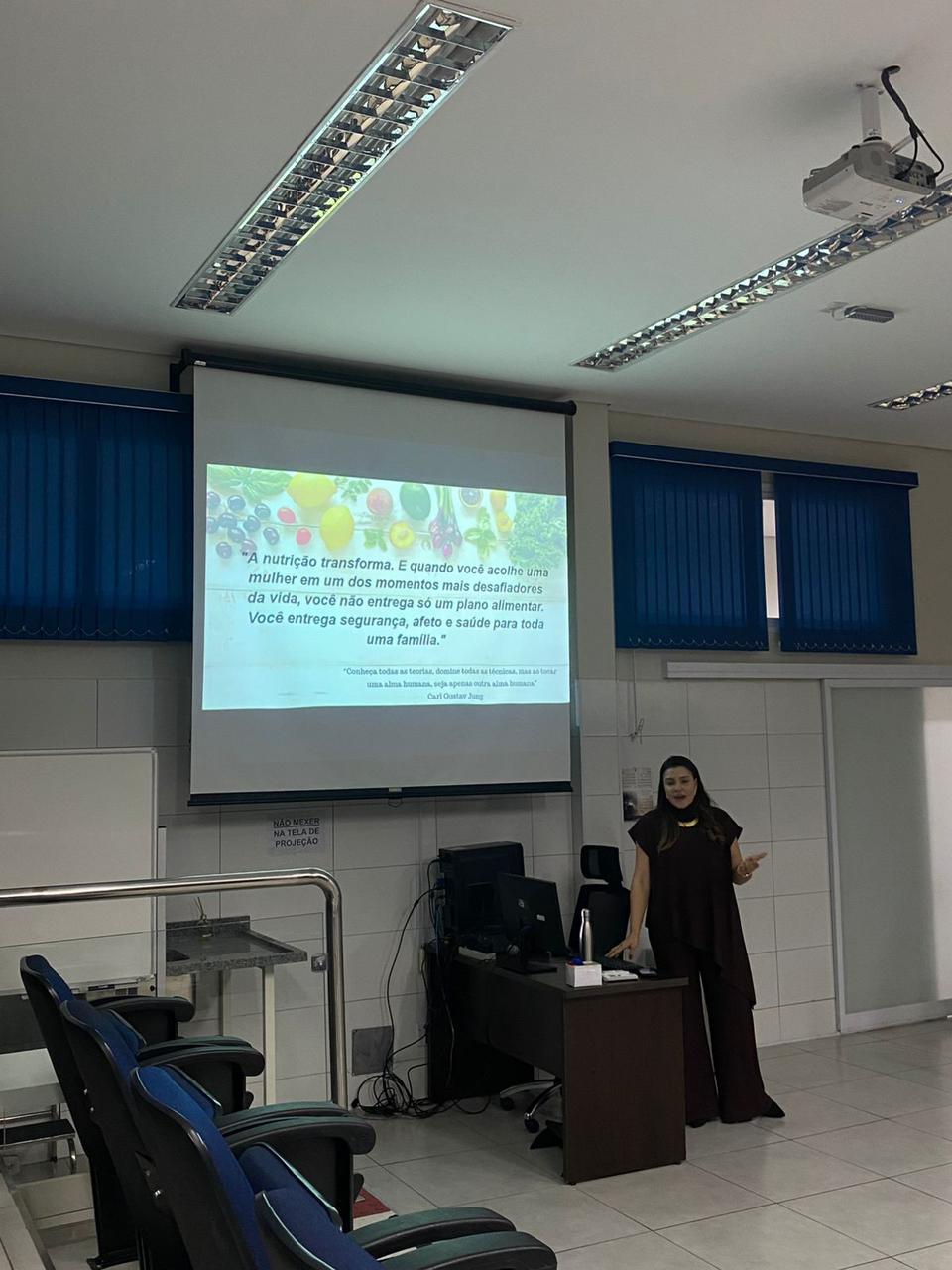 A agenda teve início com a palestra “Nutrição materno-infantil na prática”, ministrada pela nutricionista Juliana da Silva Freitas Hanamoto, que destacou a importância de uma abordagem multiprofissional baseada em evidências no cuidado de gestantes e crianças.