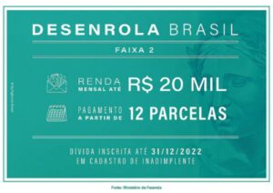 A Faixa 2 do programa atende à população com renda mensal de dois salários mínimos (R$2.640) a R$ 20 mil. O presidente Luiz Inácio Lula da Silva comentou nas redes sociais o início do programa, que, segundo o governo, vai beneficiar 70 milhões de brasileiros que possuem dívidas.