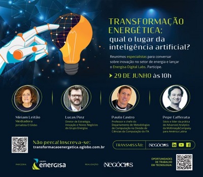 Para celebrar a criação desse espaço dedicado à inovação, criatividade e à troca de experiências entre os colaboradores parceiros e clientes, a Energisa promoverá um evento digital “Transformação energética: qual o lugar da inteligência artificial?”, mediado pela jornalista Miriam Leitão.