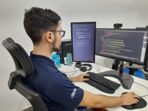 Legenda: Desenvolvedor do assistente virtual, Laércio Ferreira, explica sobre a performance e a manutenção da ferramenta