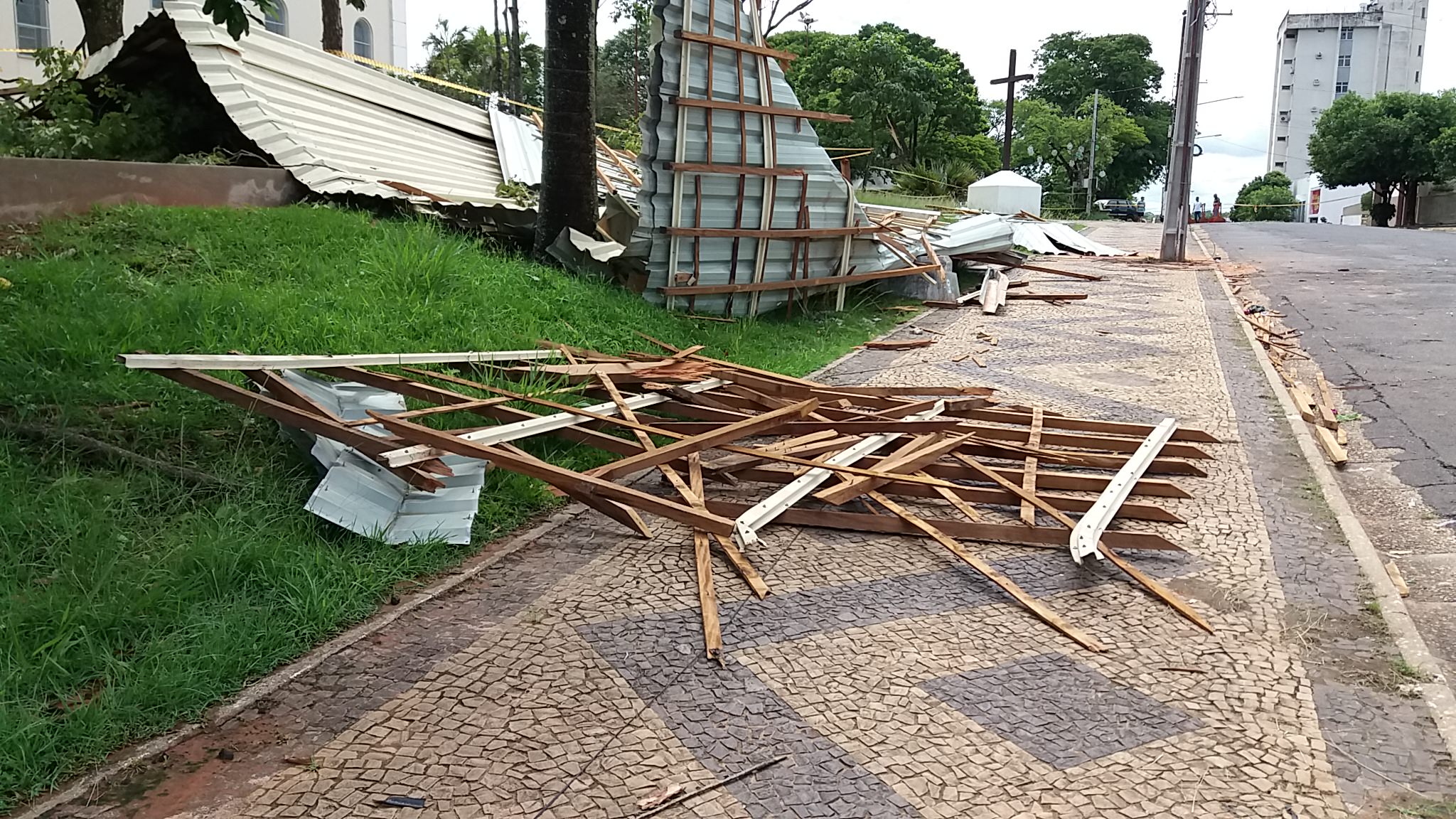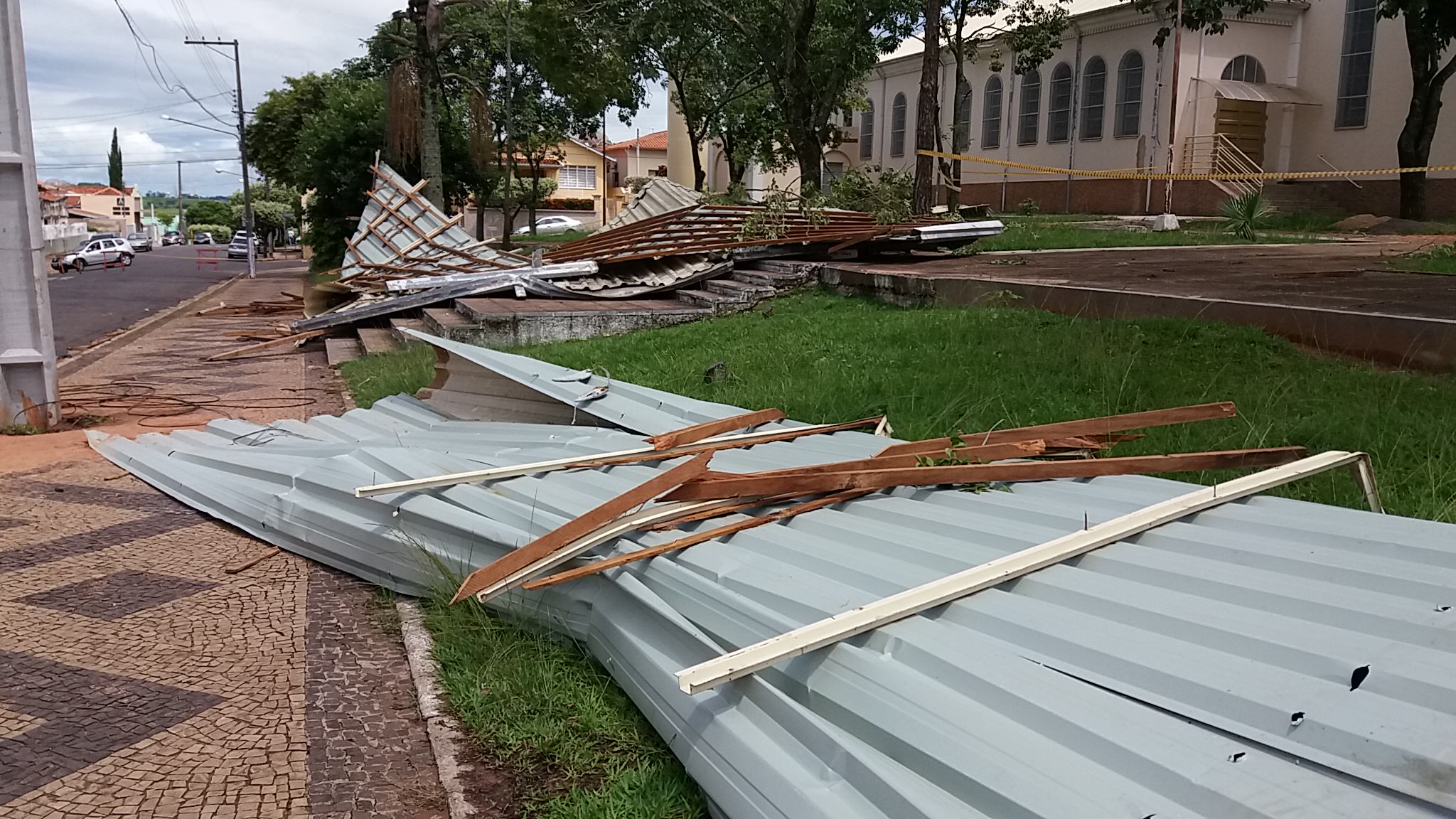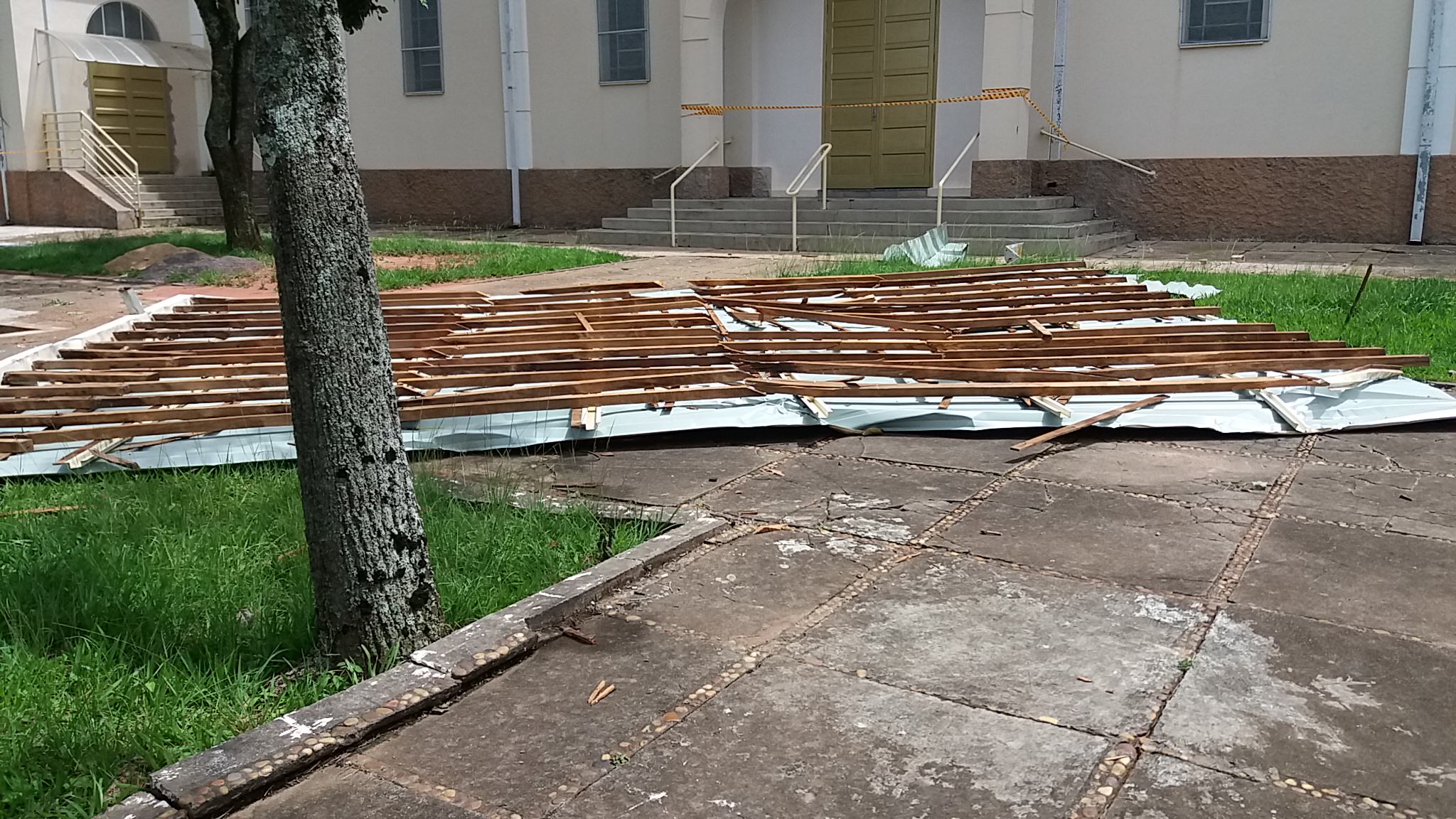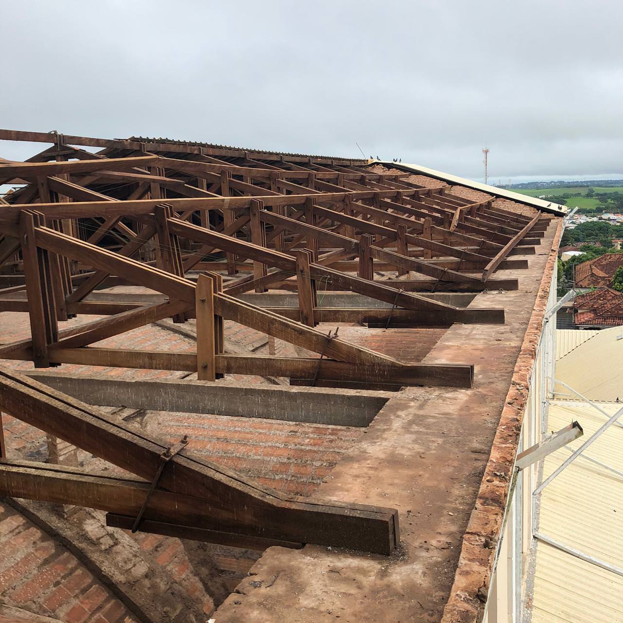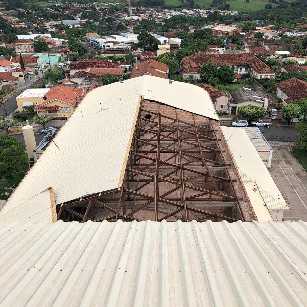 Questionado sobre as medidas que serão tomadas para a recolocação do telhado, o padre nos informou que estão aguardando o retorno do Pároco, padre Adriano Andrade, embora em viagem, ele já está em contato com os membros do Conselho Econômico da Paróquia para decidir qual atitude será tomada.
