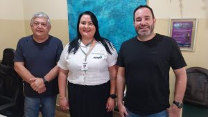 Legenda das fotos: A responsável pelo departamento de Gente e Gestão da Adagro, Suellen Vasconcelos, visitou a sede da Fatec Adamantina na tarde desta terça, 26, para conversa com o coordenador do projeto, Prof. Me. Luiz Gustavo Teixeira, e o diretor da Fatec Adamantina, Prof. Me. José Eduardo Rossilho de Figueiredo