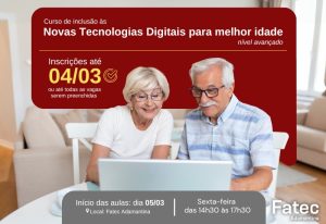 Se você tem 60 anos ou mais e quer aprofundar seus conhecimentos em tecnologia, a Faculdade de Tecnologia (Fatec) de Adamantina tem a oportunidade perfeita. Estão abertas as inscrições gratuitas para o projeto de extensão “Inclusão às Novas Tecnologias Digitais: Nível Avançado”.