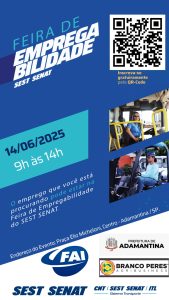 Sábado (14), a partir das 9h, será realizada na praça Elio Micheloni a Feira de Empregabilidade. Conforme o SEST SENAT, o evento nacional tem como objetivo conectar empresas, prioritariamente do setor de transporte a profissionais que estão em busca de oportunidades de emprego, impulsionando a geração de empresa e o desenvolvimento do setor.