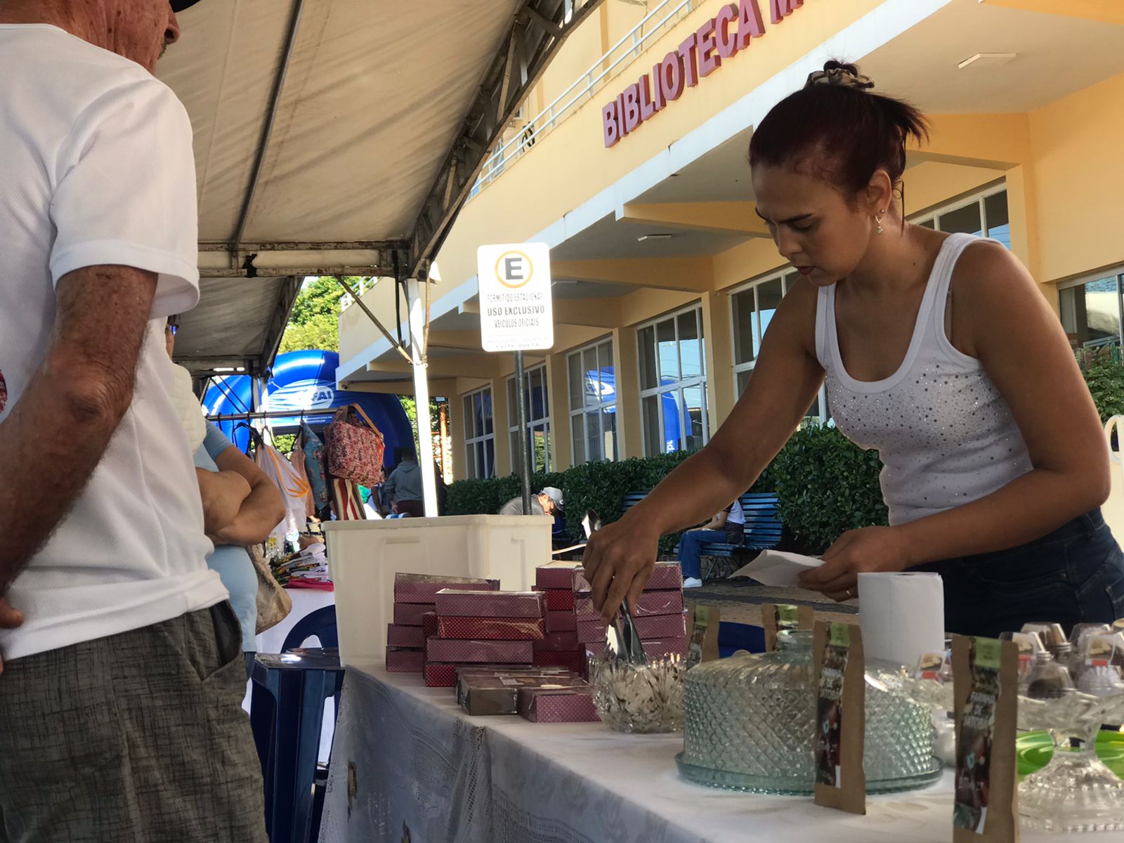 O evento, realizado na Praça Élio Micheloni, contou com o chef de cozinha fazendo bolo de jatobá fresquinho para o público provar, além de doces, licores, cachaças, farinha e diversos outros produtos.