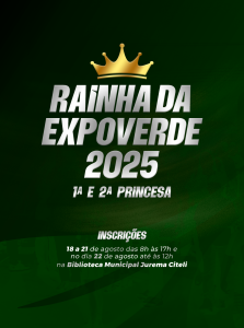 Tem início nesta segunda-feira (18), as inscrições para a seleção da rainha da ExpoVerde 2025 e da 1ª e 2ª princesa. Para participar é necessário ter entre 18 e 25 anos e morar em Adamantina.
