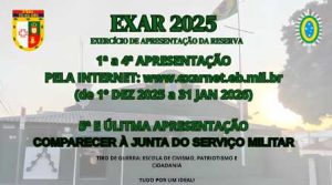 Para isso, aqueles que já estão na reserva há 5 anos ou mais podem fazer a atualização presencialmente na Junta de Serviço Militar que funciona na Rua Euclides da Cunha, 394 no Centro.