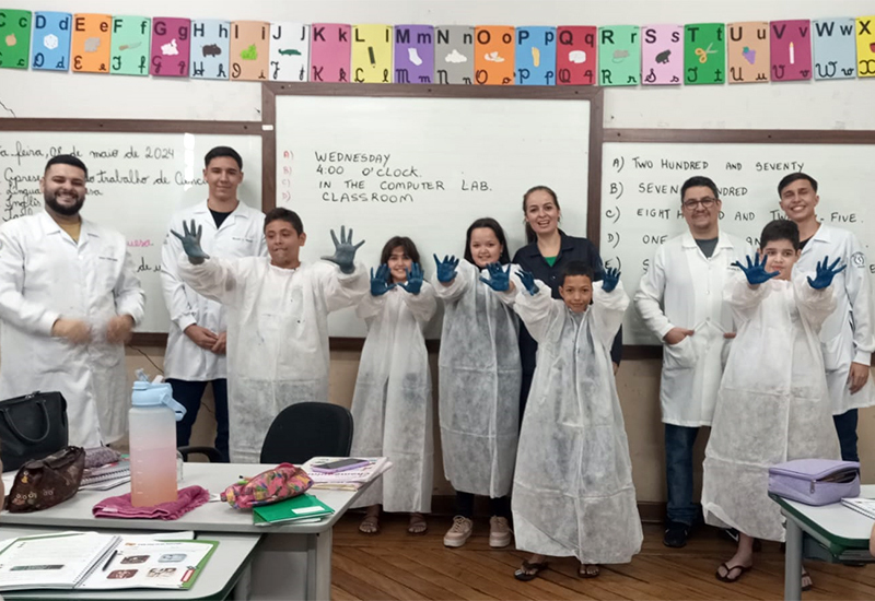 Segundo Prof.ª Ma. Dezolina Franciele Cardin Cordioli, Prof. Valdecir Guimarães e Prof.ª Dra. Marisa Furtado Mozini, docentes responsáveis pela atividade, foram utilizados materiais e dinâmicas para criar um ambiente mais divertido, pintando as mãos das crianças, o que permitiu identificar as áreas que não foram lavadas adequadamente. “Para o aluno, representa a inserção em atividades com a comunidade, trabalhando conceitos e aplicando práticas de educação em saúde, interação e multiplicação de conhecimento”, relatam.