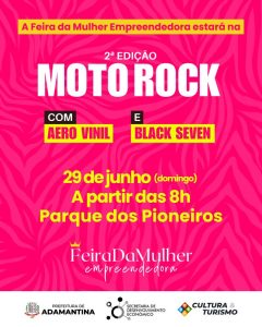 Domingo (29), a partir das 8h no Parque dos Pioneiros acontece a 2ª edição do Moto Rock e as empreendedoras participam do evento. Cerca de 35 mulheres estarão na área próxima aos quiosques comercializam produtos de diferentes segmentos como: alimentação, artesanato, acessórios e beleza e bem-estar.