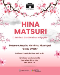 O Museu e Arquivo Histórico de Adamantina “Setsu Onishi” realiza, a partir deste sábado (11 de abril), a exposição especial “Hina Matsuri – O Festival das Meninas do Japão”. A abertura acontece às 9h, marcando o início de uma importante iniciativa de valorização cultural no município.