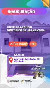 Neste sábado (29), a partir das 10h, a Prefeitura de Adamantina realiza a solenidade de inauguração do museu e arquivo histórico “Setsu Onishi”. A programação integra as comemorações alusivas aos 75 anos do município.