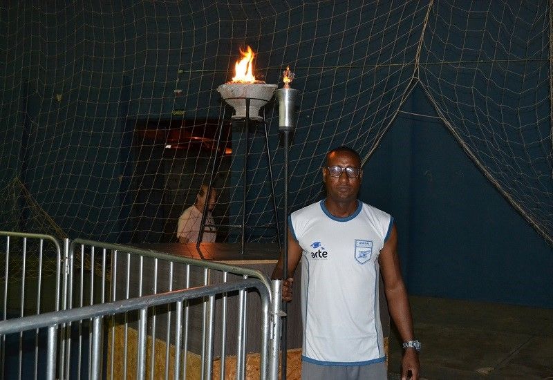 foto (tocha olímpica): O servidor Luís Gustavo Ribeiro entrou com a tocha e fez o juramento dos atletas