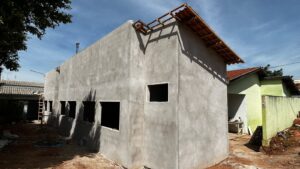 Já está concluída toda a parte de movimentação de terra, infraestrutura e superestrutura, com a alvenaria e laje completas. Ao todo, serão 117,14 metros quadrados de construção