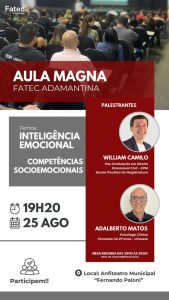 Duas palestras e uma mesa-redonda com interatividade dos alunos marcaram a programação da Aula Magna, que inaugurou oficialmente o segundo semestre do Ano Letivo 2025 da Faculdade de Tecnologia (Fatec) de Adamantina na noite desta segunda-feira, 25.