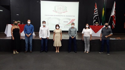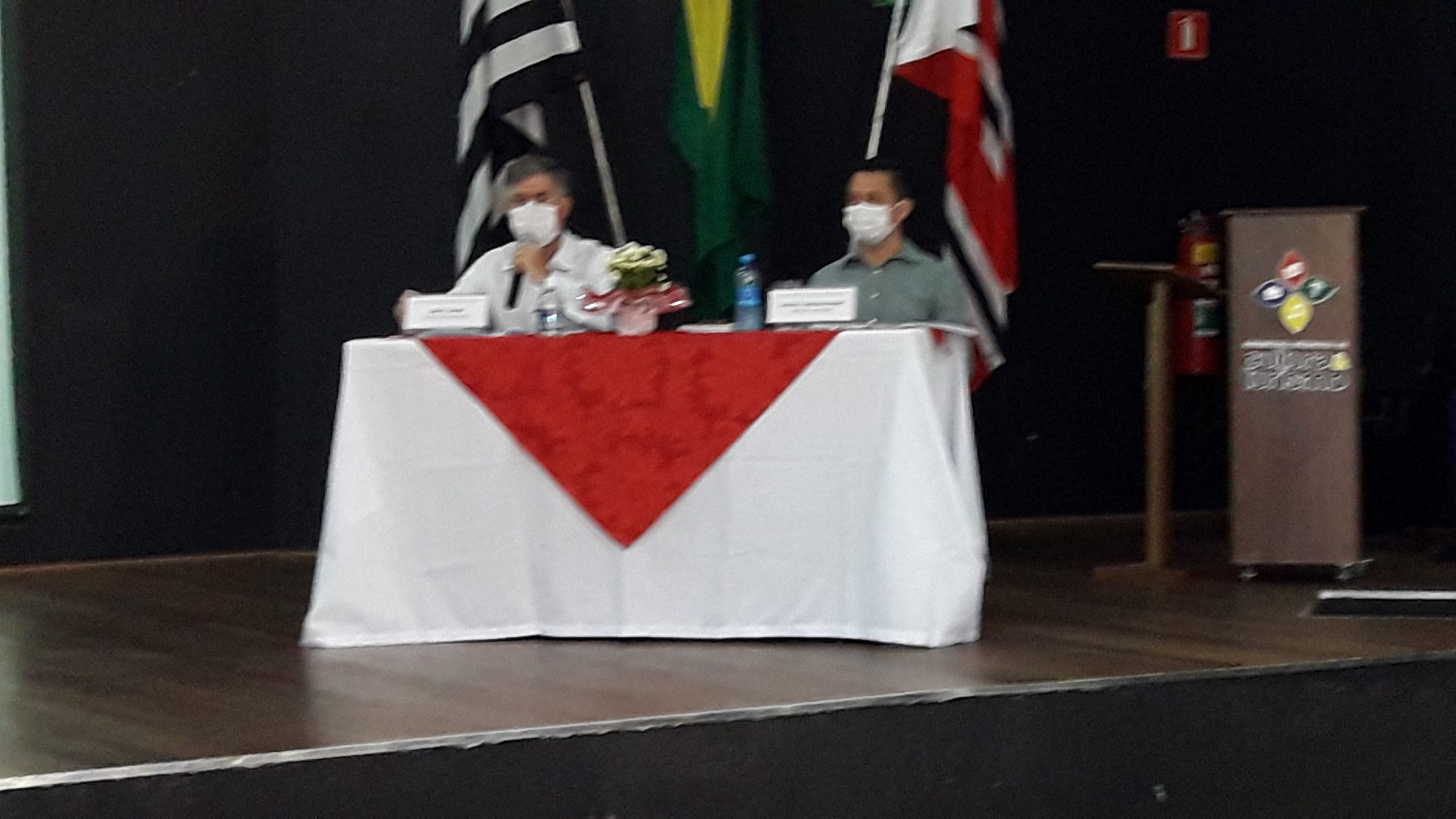 Compuseram a messa: O prefeito Márcio Cardim; Gustavo Taniguchi Rufino secretario de Sáude; Andréia Regina Ribeiro da secretaria municipal de Assistência e Desenvolvimento Social; João Vitor Marega da secretaria municipal de Planejamento e Desenvolvimento.